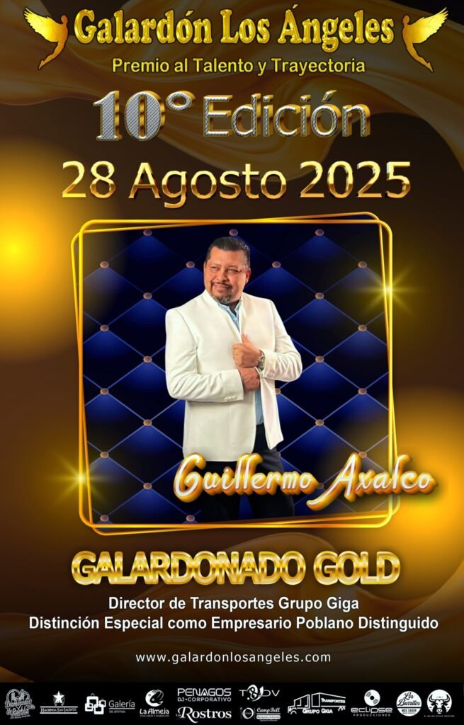 Con gran orgullo, en el marco de nuestro 10° aniversario, hacemos entrega por primera vez del Galardón Gold “Los Ángeles 2025”, un reconocimiento exclusivo a poblanos distinguidos cuyo compromiso y trabajo han contribuido de forma notable al desarrollo de Puebla y al bienestar de su sociedad.